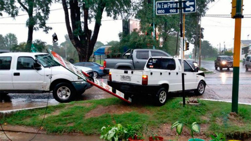 El impacto causó una desestabilización de la Fiat Fiorino, por lo que terminó embistiendo un cartel de una agencia de quiniela y un poste de cableado.
