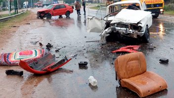 El choque fue protagonizado por un Renault 12, en el que se trasladaban cuatro personas y un Fiat Sienna, conducido por un hombre y según indicaron fuentes policiales, la condición de la cinta asfáltica, a causa de la lluvia, complicó las maniobras para evitar el impacto.