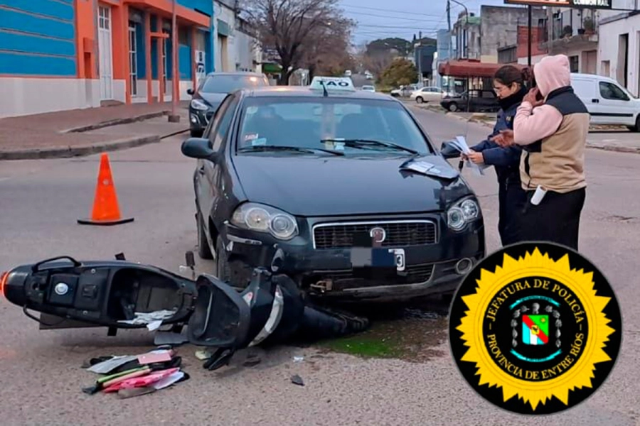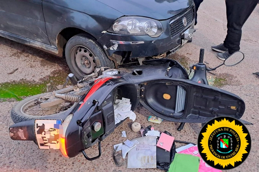 Una mujer de 36 años fue trasladada al hospital local tras colisionar con su moto contra un automóvil en Concepción del Uruguay. Se aguarda el parte médico para determinar la gravedad de las heridas tras el accidente.