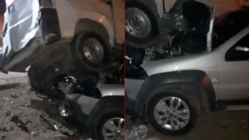 El Palio no pudo ser retirado por la grúa ya que se encontraba incrustado sobre la camioneta.