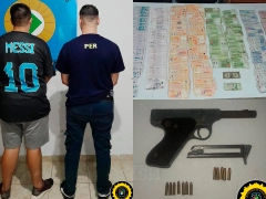 Incautaron 143 envoltorios con marihuana, 15 dosis de cocaína, 2.011.640 de pesos, una pistola calibre 22 largo con 12 cartuchos en su almacén cargador, dos balanzas de precisión, una carpeta con anotaciones de interés para la causa que se investiga, recortes de nylon y un celular tras un allanamiento a una vivienda de calle Baxada del Paraná al final sin número, en la capital entrerriana.