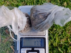 Durante el allanamiento de los cuatro ocupantes del rodado, todos oriundos de la provincia de Buenos Aires, se hallaron y secuestraron varios envoltorios con Cannabis sativa, comúnmente conocida como marihuana, con un peso total de 17,7 gramos, además de un cuchillo metálico y una caja con papel para armar cigarrillos.