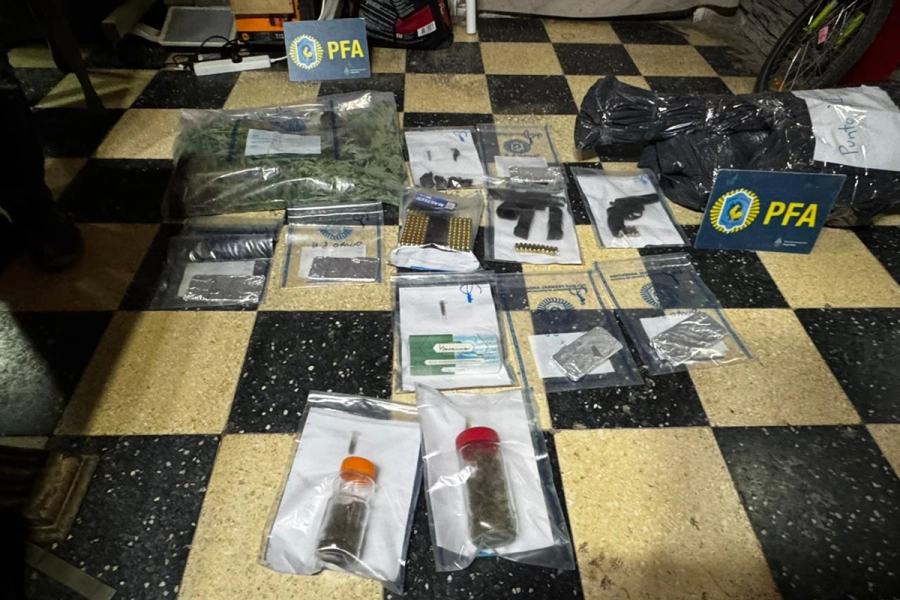 También se hallaron armas de fuego: dos pistolas calibre 40 y 22, un revólver calibre 38 y una gran cantidad de municiones de distintos calibres. Todo el material quedó bajo custodia judicial junto a los detenidos.