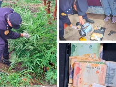 En el operativo también fue identificada una mujer de 23 años, residente en la misma vivienda. Si bien no se encontraron armas ni cartuchería en el lugar, los efectivos hallaron varios elementos relacionados con el narcotráfico. Entre los objetos secuestrados se encontraban siete plantas de marihuana de diferentes tamaños, un envoltorio con 74,4 gramos de marihuana, 1,2 gramos de cocaína, una balanza digital y una suma importante de dinero en efectivo: $709.910 pesos.