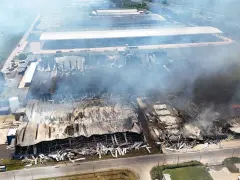 Los depósitos de Neumáticos Larroca y Plásticos Lago fueron alcanzados por las llamas trasladadas por el viento. Varias compañías situadas en el predio sufrieron daños considerables por la onda expansiva.