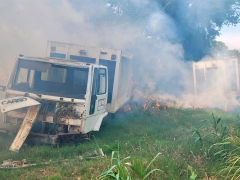 Un vehículo y dos camiones municipales utilizados para la recolección de residuos resultaron destrozados como consecuencia de un incendio en predio municipal de Concepción del Uruguay.