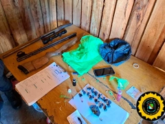 En el tercer procedimiento se notificó a un hombre de 47 años. Durante la requisa, se incautaron un rifle de gas comprimido, una "tumbera" tipo escopeta calibre 12/70, 11 gramos de marihuana, recortes de nylon y una planta de marihuana. Como consecuencia del operativo, se detuvo al morador de la casa allanada –quien también se encontraba bajo arresto domiciliario– junto con otro de 29 años; ambos fueron imputados por tenencia de estupefacientes con fines de comercialización y tenencia ilegítima de arma de fuego.