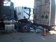 Un camión Iveco (utilizado para el traslado de hacienda, pero iba sin carga) chocó a un Scania 113H (de matrícula brasilera) en el acceso al Túnel Subfluvial del lado entrerriano. Como consecuencia del accidente, afortunadamente, no se reportaron lesionados, pero si importantes daños materiales.