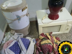 Los delincuentes sustrajeron varios objetos de valor, entre ellos un microondas, un equipo de música, un secarropas, un velador marrón, tres manteles y ropa.