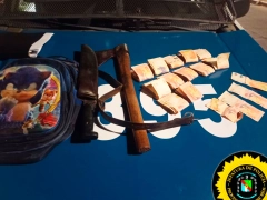 Los efectivos inician una búsqueda y logran localizar al sujeto a pocos metros del lugar, teniendo entre sus prendas los elementos mencionados, además de una mochila con hacha y machete.