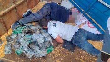 El personal de la Aduana detuvo a pareja que intentó salir del país por la fronterizo Concordia-Salto, con 87 kilos de cocaína. La droga estaba oculta en un camión con una carga de maíz, proveniente de Paraguay. Valdría u$s1,3 millones.