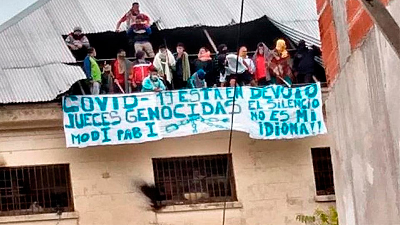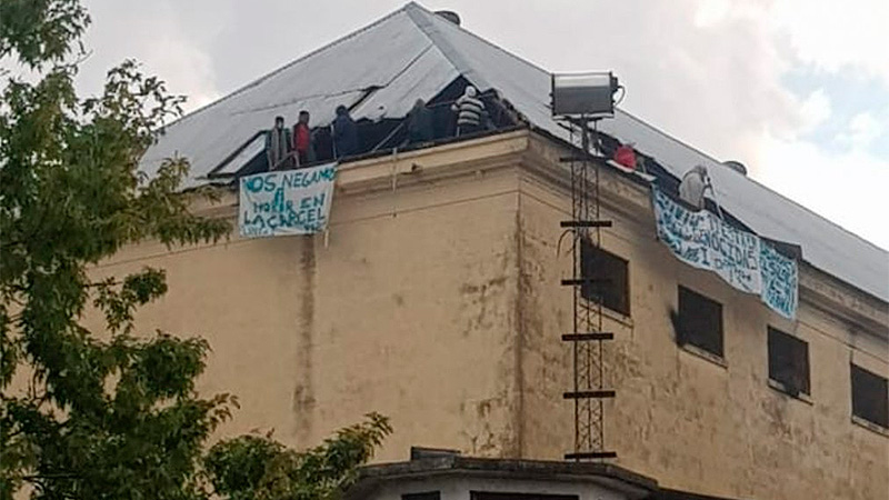 En la zona de los techos, los reclusos colgaron una bandera grande, con el siguiente mensaje: "Nos negamos a morir en la cárcel".