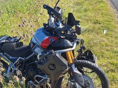 Una camioneta Amarok que circulaba por el lugar con destino a la ciudad de Federal, fue chocada desde atrás por una moto Triumph Tiger de 900 cc.