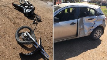 El choque se produjo en calle Rocha y Almeida, de la ciudad de Villaguay. Producto del fuerte impacto, la motocicleta quedó partida al medio y su conductor sufrió fracturas en la pierna y traumatismo de cráneo.