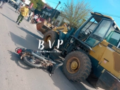 El accidente ocurrió este mediodía cuando la moto impactó contra una motoniveladora que realizaba trabajos de mantenimiento vial sobre avenida Almafuerte. El conductor fue trasladado al hospital San Martín, supo Elonce.