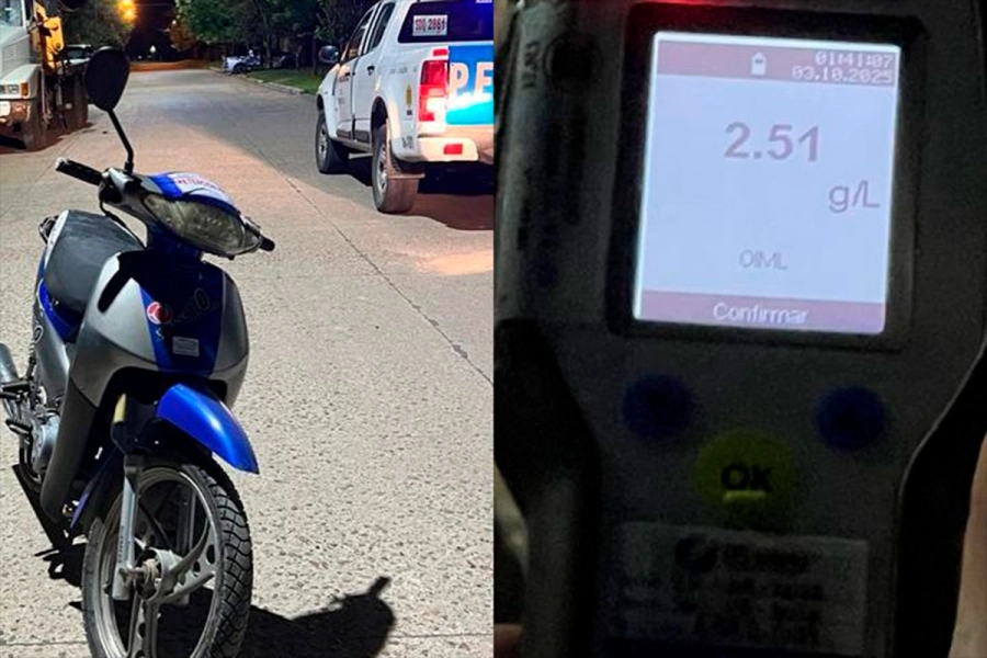 Ante esta situación, se solicitó la intervención del personal de Tránsito Municipal para realizar el control correspondiente. El test de alcoholemia arrojó un resultado positivo de 2,51 gramos de alcohol en sangre, muy por encima del límite legal permitido para conducir motocicletas.