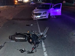 El impacto fue contra la parte frontal derecha del automóvil, lo que provocó que ambos ocupantes de la moto quedaran inconscientes sobre la cinta asfáltica.