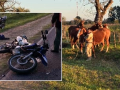 Según se informó, una mujer a bordo de una Yamaha YBR 125 cc. y un hombre en una Mondial Tundra se trasladaban en sentido oeste por la Av. Rucci cuando una camioneta frenó bruscamente. Los motociclistas habrían intentado esquivarla y, al maniobrar, terminaron chocando con un grupo de caballos que se encontraba en la cinta asfáltica.