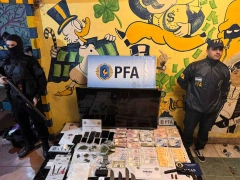 Uno de los inmuebles allanados sorprendió a los efectivos por su particular decoración: coloridos murales adornaban las paredes con imágenes alusivas al dinero, la riqueza y el lujo, lo que refuerza el perfil narco de la organización y su afán de ostentación.