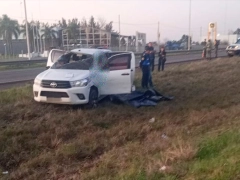 El impacto provocó que la camioneta volcara en el cantero central. Personal de emergencias del 107 acudió de inmediato y constató que el conductor no presentaba signos vitales.