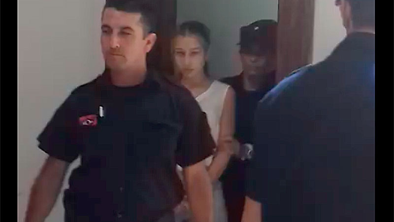 La joven que confesó haber matado a Fernando Pastorizzo arribó a la sede judicial de Gualeguay, esposada y con una fuerte custodia policial.