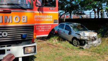 Una vez que policías y los bomberos llegaron al lugar del hecho, con la intención de socorrer a la mujer que permanecía adentro del vehículo, el hombre fue derivado y examinado en el hospital Justo José de Urquiza.