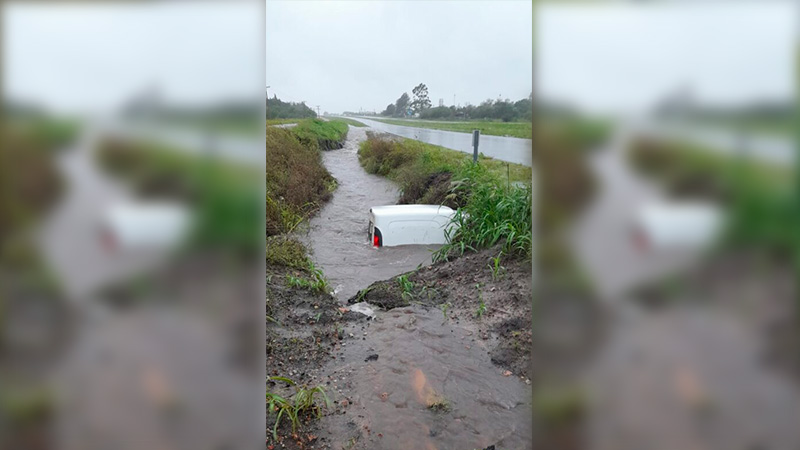 En medio del temporal de intensas lluvias, un paranaense al mando de un utilitario perdió el control del rodado y despistó a la altura del kilómetro 147; el rodado terminó sumergido y su conductor, afortunadamente, resultó ileso.