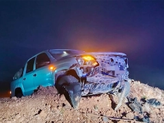 El hecho ocurrió mientras la pareja se desplazaba en dirección Este a bordo de una camioneta Volkswagen Amarok. Por causas que se investigan, el conductor de 61 años no advirtió la presencia del terraplén que cortaba la calzada y colisionó de frente contra el obstáculo.