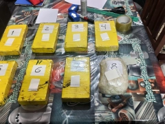 La PSA detuvo a una pareja con más de 10 kilos de cocaína acondicionada "ladrillos" marcados con el sello del delfín y envueltos en cinta de embalaje amarilla, características asociadas al llamado "Patrón del Norte".