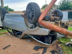 Un Volkswagen Bora terminó con las ruedas hacia arriba luego de impactar contra una columna de alumbrado y chocar una camioneta estacionada en la vía pública. Ocurrió este domingo por la mañana en la intersección de J. J. Valle y Odiard, en Concordia.