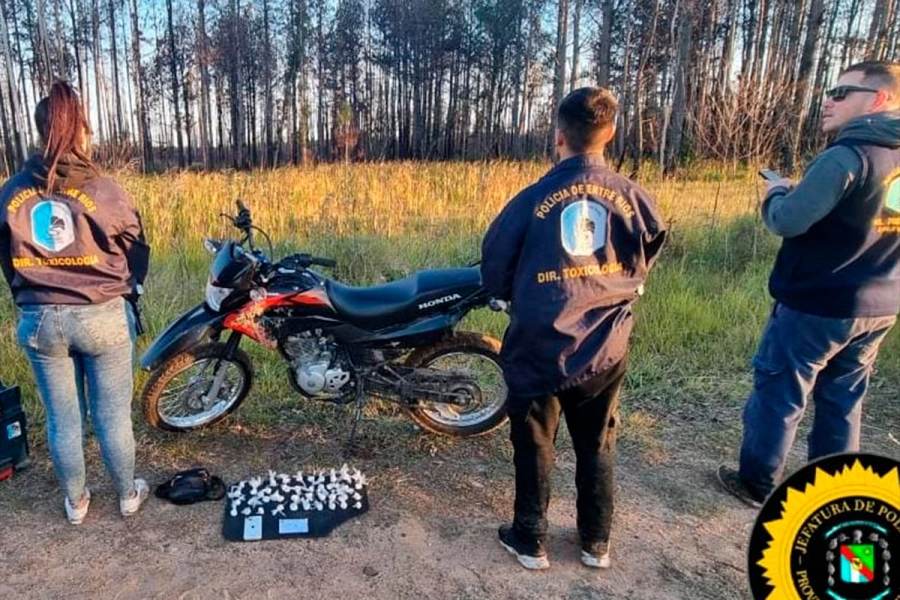 Dos hombres fueron detenidos en Concordia luego de una persecución policial que comenzó durante un control vehicular de la policía. Secuestraron cocaína fraccionada, una moto y un celular.