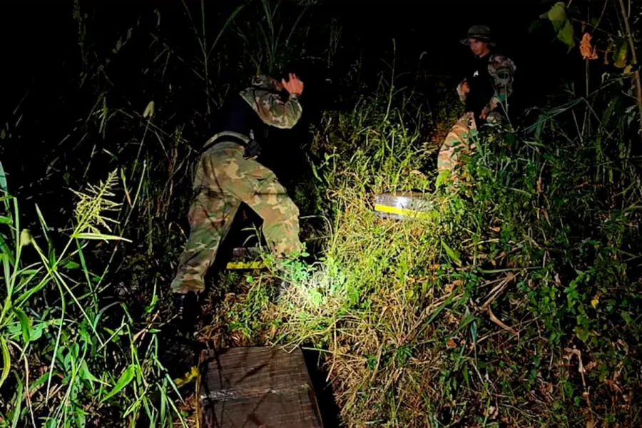 Luego de desplegar recursos terrestres y fluviales, los efectivos hallaron 28 bultos ocultos entre la vegetación, detallaron. No había rastros de las personas que lo trasladaban.