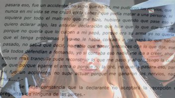 <b>Sobre la noche de la muerte, explicó que él estaba muy enojado, que fue él quien tomó el arma de su padre policía y que a ella se le escaparon los disparos en medio de un raid enloquecido que emprendió Fernando con su moto</b>. En este punto Nahir se contradijo con su primera declaración: el 30 de diciembre por la noche admitió que ella había disparado el arma por delante y por detrás.