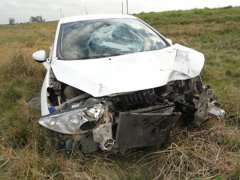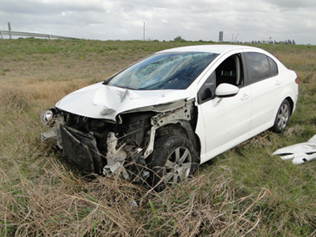 Un Peugeot 408 “mordió” la banquina, perdió el control e impactó contra un cartel indicatorio para terminar a la vera del kilómetro 338,5 de la Autovía ex Ruta 14; el conductor no registró lesiones tras el accidente.