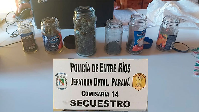 Fuentes policiales informaron a Elonce, que el allanamiento se concretó en calle Banda Oriental esquina calle Godoy, notificaron a un hombre de 32 años de edad. Allí secuestraron una mochila marca Cechini, color gris y negra, diez pastillas para problemas renales y un teléfono celular marca Motorola E7, color negro. También incautaron seis frascos de vidrio, conteniendo sustancia vegetal símil marihuana.