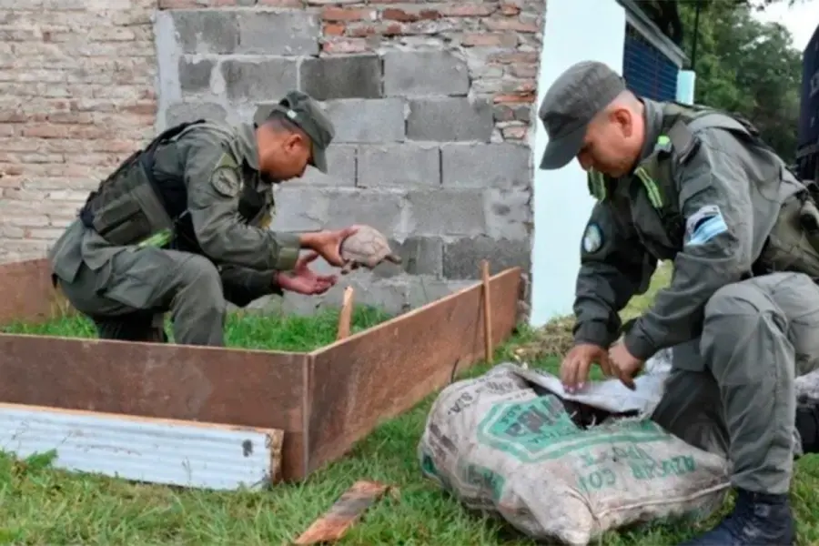 Al profundizar el control, los gendarmes encontraron un total de 17 bultos compuestos por cajas de cartón, cajones de madera y bolsas de arpillera. En su interior se hallaban tortugas terrestres adultas, encimadas unas sobre otras, en condiciones precarias.