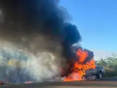 El hombre logró descender de la camioneta e intentó sofocar las llamas con un matafuegos, pero no pudo controlar el fuego. Si bien los bomberos y efectivos policiales arribaron a los pocos minutos, el incendio ya había afectado por completo a la camioneta, provocando daños totales.