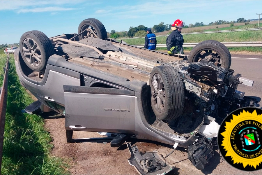 Horas antes, en el kilómetro 179 de la misma autovía, personal de Comisaría Liebig, dependiente de la Jefatura Departamental Colón, intervino en otro accidente. Allí, una camioneta Citroën Berlingo perteneciente a la Asociación Benéfica Remar Argentina, perdió el control y terminó volcando sobre la banquina.