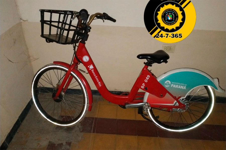Un hombre de 36 años fue detenido en Paraná tras robar una bicicleta del servicio público municipal e intentar venderla en el Barrio Macarone. La bicicleta fue recuperada y el sospechoso trasladado a la Alcaidía de Tribunales.