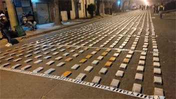 No era el único procedimiento en Rosario, pero sí el más relevante. Desde las 2 de este viernes, los agentes federales -de Superintendencia de Drogas Peligrosas y la Agencia Regional de la Policía Federal- comenzaron a sacar a la calle los ladrillos de cocaína que fueron colocados en la calle, donde son contabilizados.