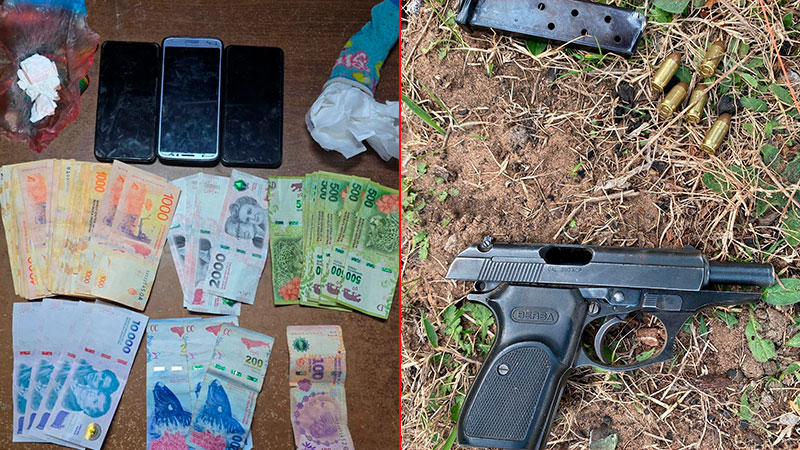 Los allanamientos permitieron secuestrar un total de 85 envoltorios de cocaína que estaban fraccionados y listos para comercializar, 30 gramos de cocaína sin fraccionar, una pistola Bersa calibre 380, con numeración visible y nueve cartuchos del mismo calibre, 17 celulares, 697.400 pesos, además de elementos de corte y fraccionamiento.