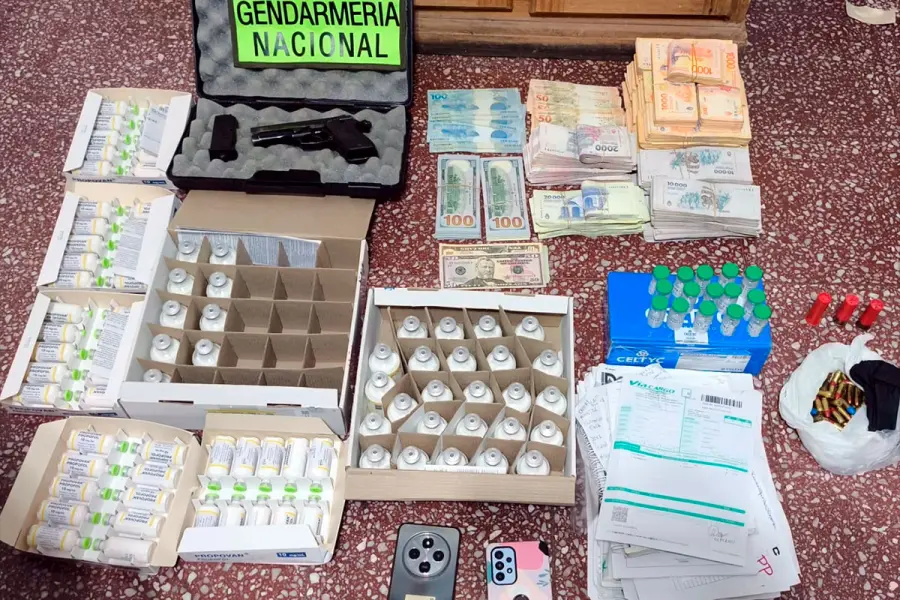 Los gendarmes al inspeccionar los inmuebles en la ciudad de Paraná incautaron, 148 frascos de Propofol, 90 ampollas de morfina, 50 ampollas de fentanilo, 25 frascos de ketamina, 15 frascos de remifentanilo, documentación, $15.801.500 pesos argentinos, 17.100 dólares, 3.200 reales, armas y municiones.