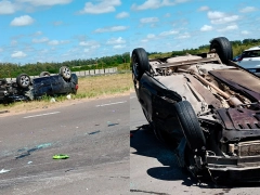 El impacto fue tan fuerte que ambos vehículos quedaron con sus ruedas hacia arriba, y los daños materiales fueron considerables. De inmediato, seis ,de los siete ocupantes de los autos, fueron trasladados de urgencia al Hospital Urquiza de Concepción del Uruguay.