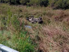 En ese intento por esquivar el impacto, el conductor volanteó hacia la banquina, lo que provocó que la camioneta impactara contra las barandas de contención del puente. A raíz del golpe, el vehículo perdió estabilidad y terminó volcando, quedando a varios metros de la cinta asfáltica con las ruedas hacia arriba y severos daños materiales.