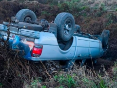 El hecho ocurrió alrededor de las 17:20, cuando una camioneta Ford Ranger, doble cabina, que circulaba en sentido norte-sur, protagonizó un vuelco al costado de la calzada.