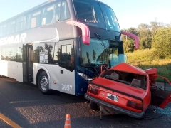 Durante esta maniobra, el automóvil se desvió y colisionó frontalmente con el colectivo, que viajaba en sentido contrario, llevando consigo la vida de dos ocupantes del automóvil.