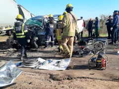 Tres personas murieron este sábado en un choque entre una camioneta Toyota Hilux y un tren de carga de cereales, a la altura del kilómetro 190 de la ruta nacional 12 y el cruce ferroviario de Médanos (departamento Islas), en el sur de Entre Ríos. El único sobreviviente a la tragedia vial fue trasladado al hospital San Antonio de Gualeguay.