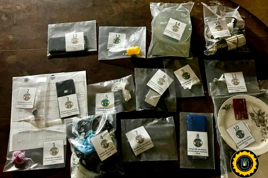 Durante los allanamientos se secuestraron distintas sustancias estupefacientes y elementos considerados relevantes para la investigación. Entre los elementos incautados se hallaron más de 70 gramos de clorhidrato de cocaína y una menor cantidad de marihuana.
