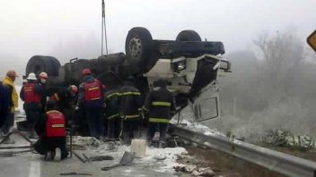 <b>El camión que se dirigía en sentido Norte-Sur quedó volcado a un costado de la ruta mientras que las camionetas habrían caído al barranco. Todos los rodados con daños materiales casi totales. </b>