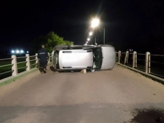 Al parecer, el conductor impactó contra un lateral del puente y volcó. Los tres ocupantes lograron salir del vehículo y fueron atendidos por las heridas sufridas.